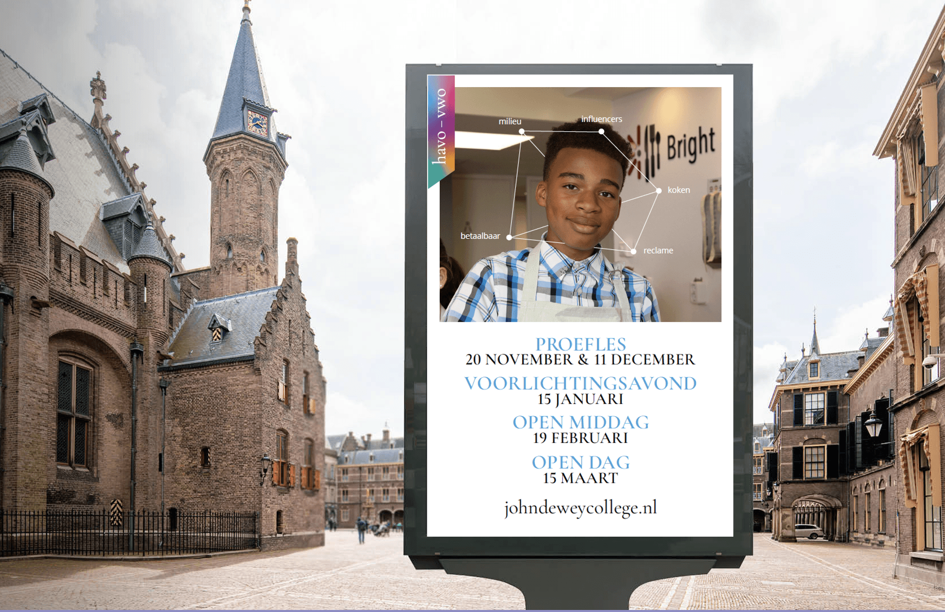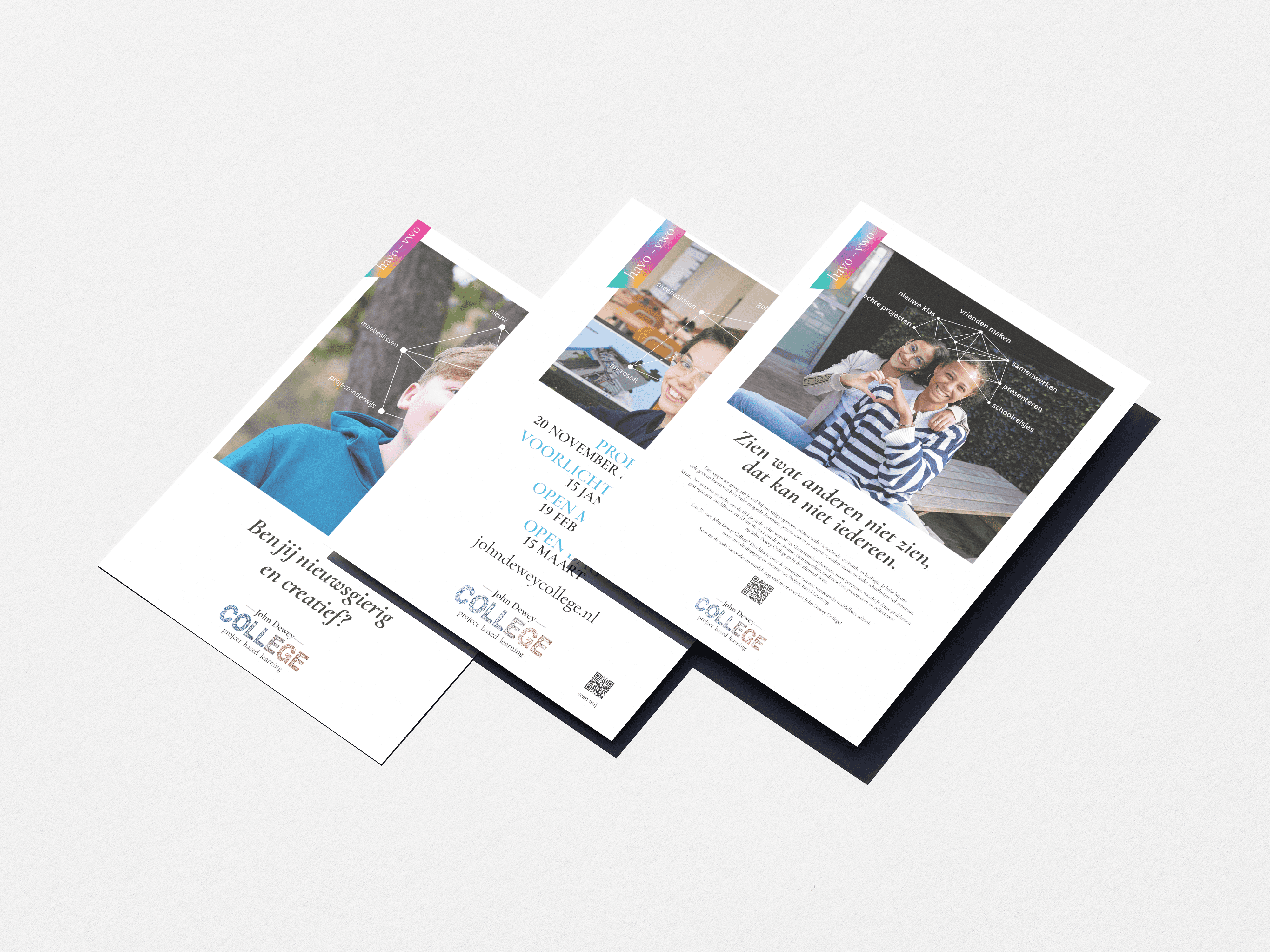 Project Based Learning is nieuw in Den Haag. Wij hielpen mee het onderwijsconcept uit te denken, het Strategisch Creatief Concept te ontwikkelen en creatieve campagnes te maken die recht doen aan een zeer onderscheidende onderwijspropositie: Project Based Learning op het John Dewey College.